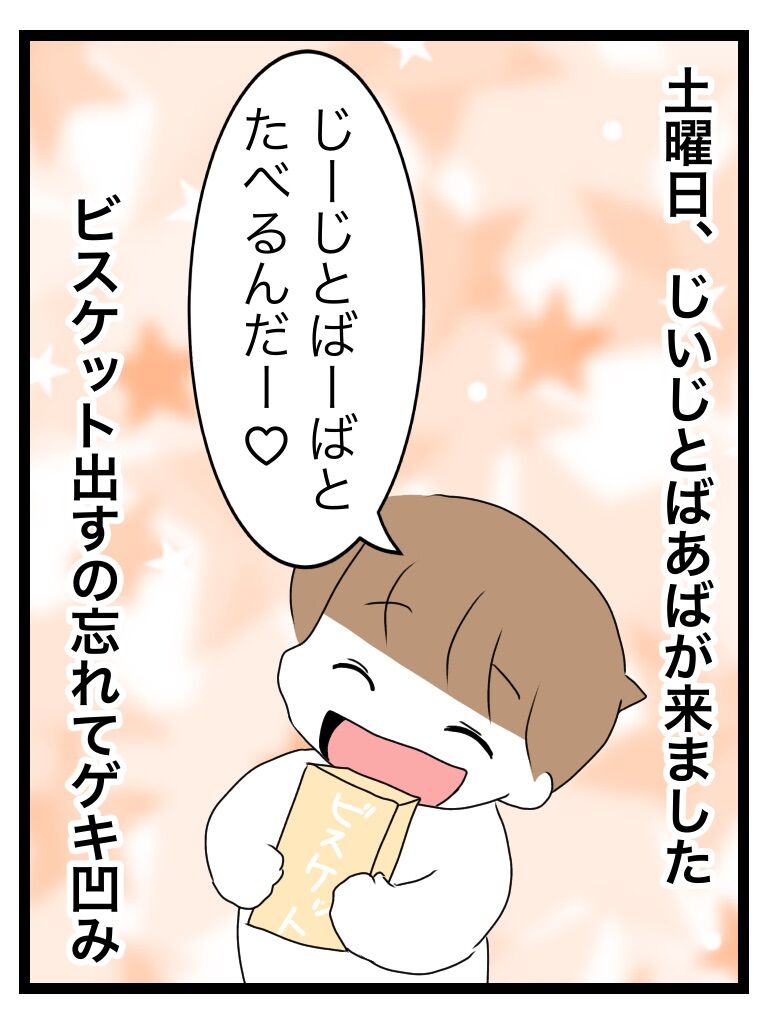 楽しみにしていたビスケットを、「じいじとばあばにあげる❗️」と楽しみにしていたのですが、